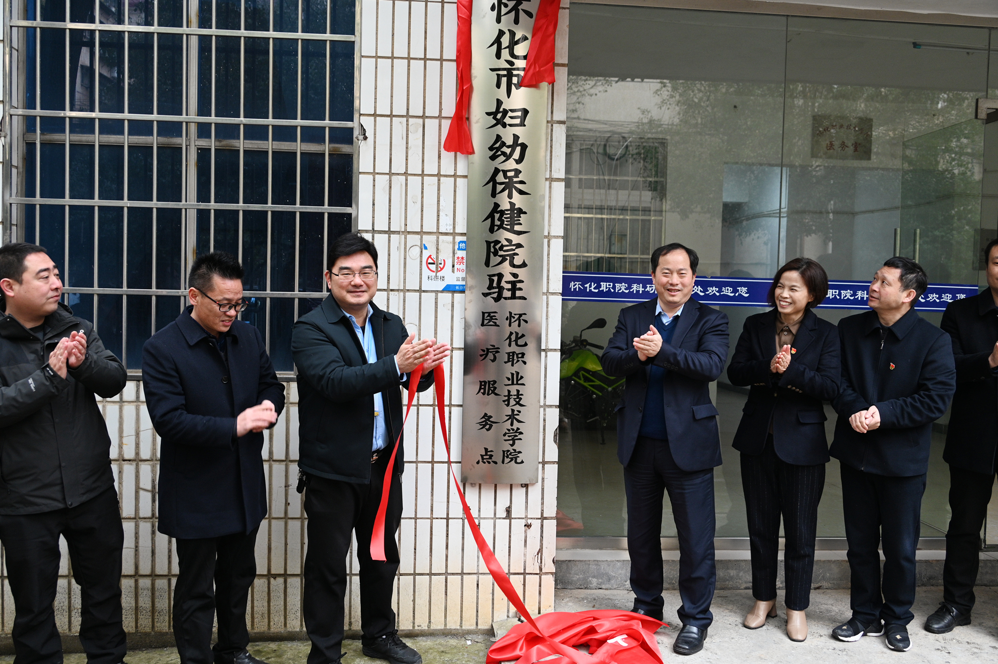 2月25日,怀化市妇幼保健院驻我校医疗服务点揭牌仪式在我校举行。怀化市妇幼保健院院长张在田、学校党委委员、宣传统战部部长刘鑫出席揭牌仪式。