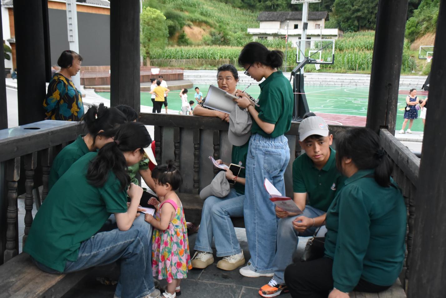 团队成员们还挨家挨户开展走访,进行一对一辅导。他们与当地花瑶族村民们聊天交流,了解村民们在学习普通话过程中的实际困难和需求,耐心纠正村民的发音和语法错误,赢得当地村民的连连称赞。