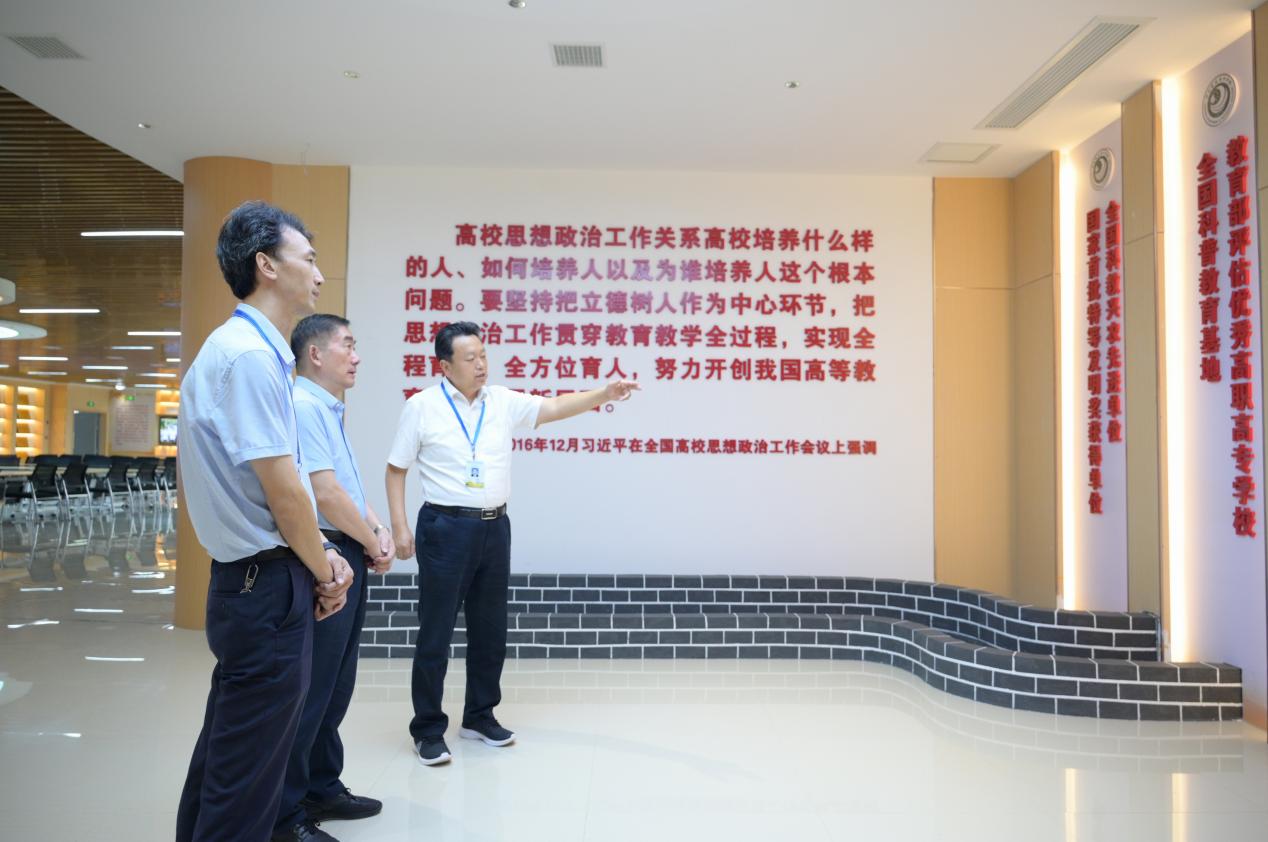 蒋昌忠先后参观调研了学校金种子思政教育中心、农学园艺学院实训室、金种子书屋、新食堂新宿舍和人社驿站等。