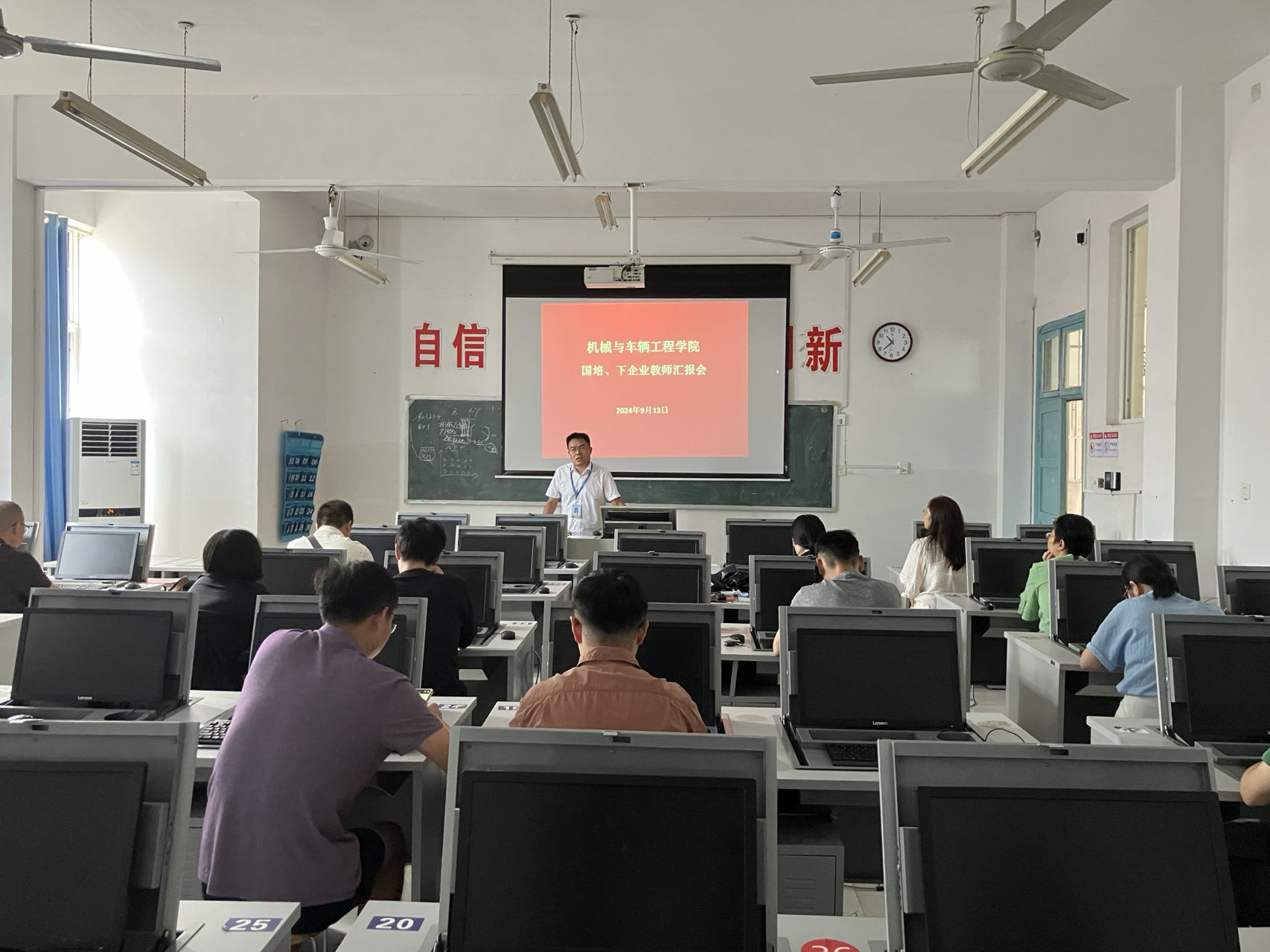 9月13日下午,机械与车辆工程学院在实203教室召开暑期教师国培、下企业锻炼总结汇报会。本次汇报会由院长付昌星主持,郝彦琴、钦宇、杨友才等7名教师作汇报展示,全体专任教师参加。