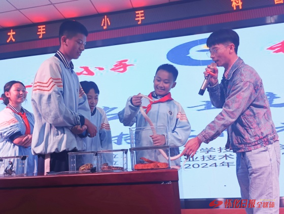 怀化日报全媒体讯10月14日,由怀化市科学技术协会和怀化市教育局主办,怀化职业技术学院和怀化市宏宇中学共同承办的“大手拉小手,科普志愿行”暨“百名院士进校园、万名科技工作者上讲台”科普活动如期开展。