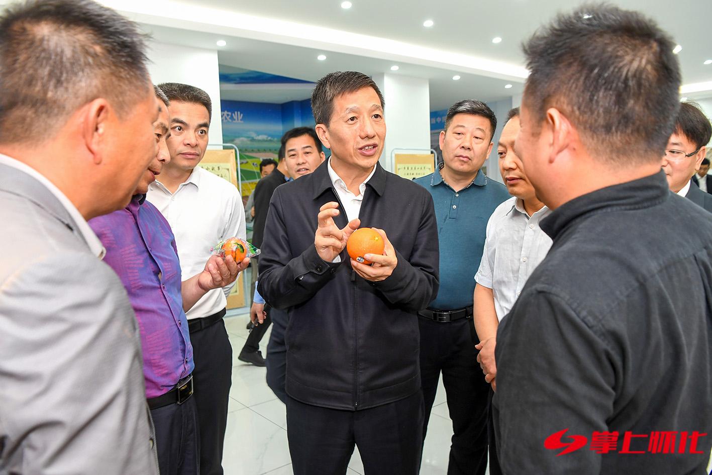 (4月18日上午,市委书记许忠建专题调研种业振兴工作。图为许忠建在市农业科学研究院了解柑橘新品种的培育情况。怀化日报全媒体记者 杨智伟 摄)