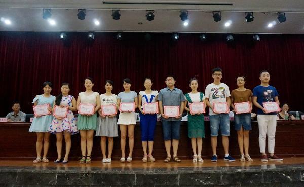在第二届教学名师评选现场投票活动之后,副院长张圣喜宣读了《关于2016年怀化职业技术学院青年教师说课比赛获奖结果的通报》,院领导分别为我院青年教师说课比赛获奖者颁奖,其中机械与汽车工程系宋玲和电子电气工程系王鹏获得一等奖,信息与艺术设计系丁密和政治理论课部张珊获得二等奖,建筑工程系李文博和人文科技系李微微获得三等奖。